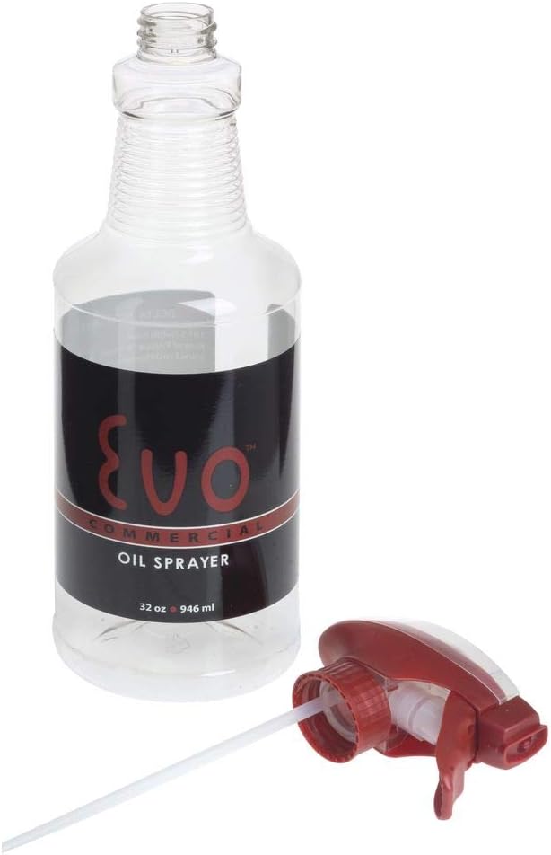 This 32 ounce EVO oil spray bottle dispenses a consistent 1/4 teaspoon in every spray. The fan spray pattern is designed for a more controlled spray. Additionally, the spray bottle is a better, healthier alternative to aerosol spray cans.