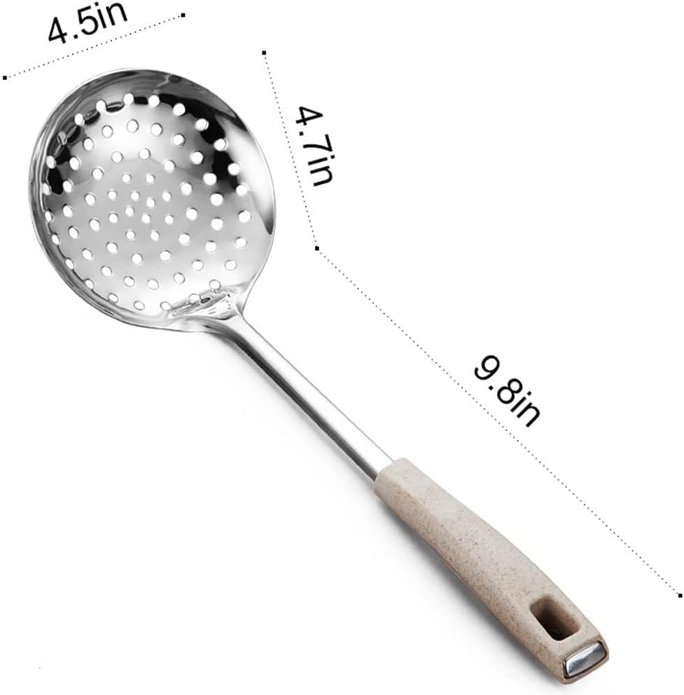The strainer spoon is ideal for kitchen cooking, restaurants, family gatherings, and picnics.Product name: stainless steel rice color colanderProduct material: stainless steelProduct characteristics: very suitable for soup, vegetables, pasta, dumplings, wontons, fried foods, etc.Applicable places: restaurants, restaurants, kitchens, etc.Notice:1. Please check the size and color before purchasing, (except items not included in the product image)2. Due to different monitors, there may be some color difference, please forgive me3. The size of the mark is measured manually, a slight error is normal, please understand4. Stainless steel products, please avoid cleaning with hard objects5. The product may have scratches during transportation, which does not affect the normal use of the product6. If you find any problems with our products, please contact us by email in time, we will solve the problem as soon as possible7. Welcome to share and feedback so that we can provide you with better products and services.8. Thank you for visiting my store, click to enter my store, there will be more products for your reference