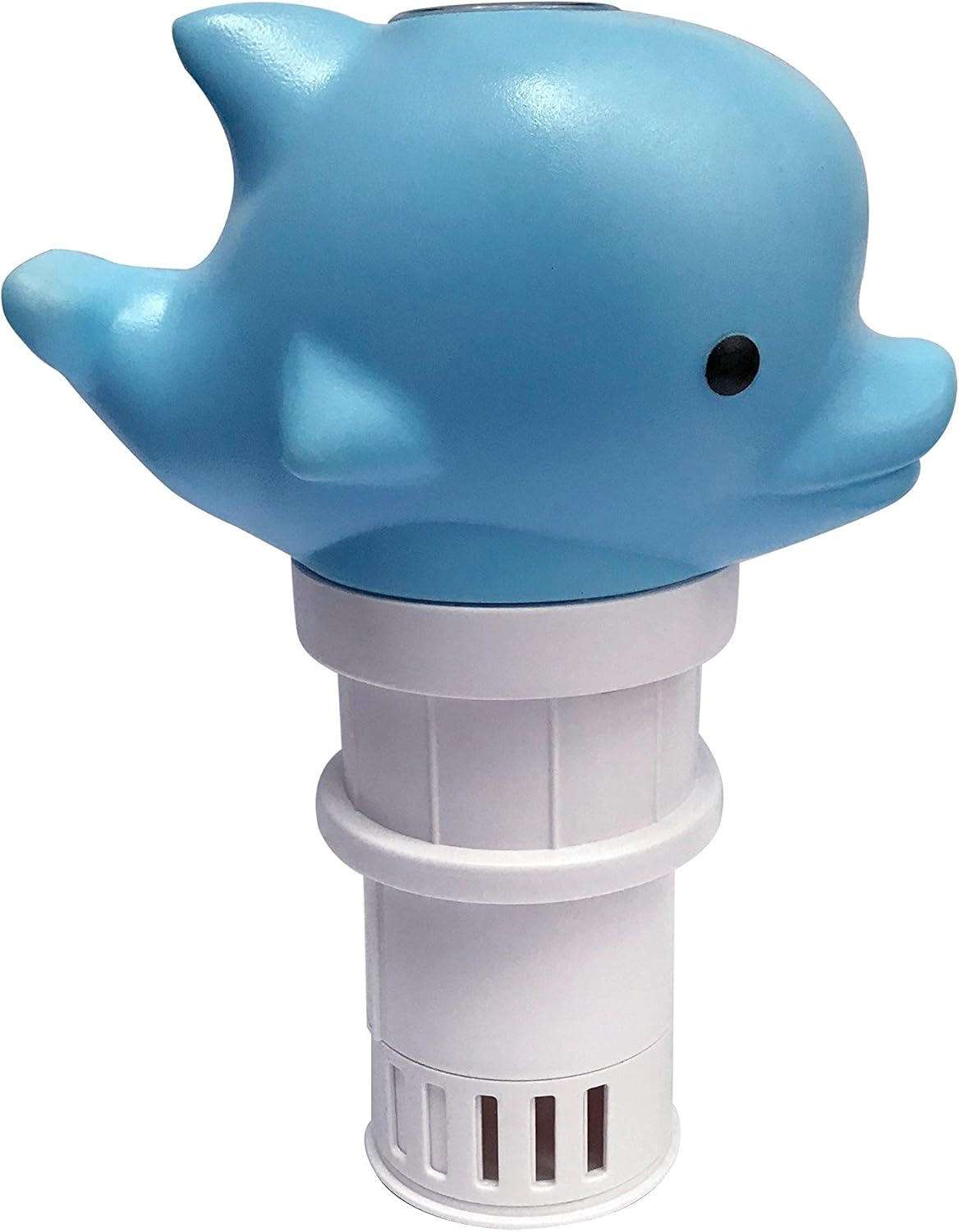 Heavy-duty chlorine tablet floater. Solar dolphin design makes your pool more vibrant! The bottom can rotate to control the release size of chlorine.