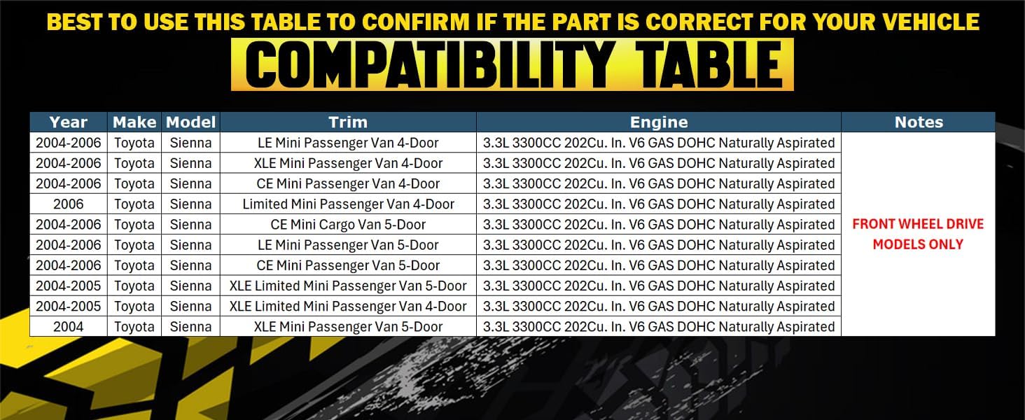 | Compatible with Vehicle Type | Toyota Sienna |