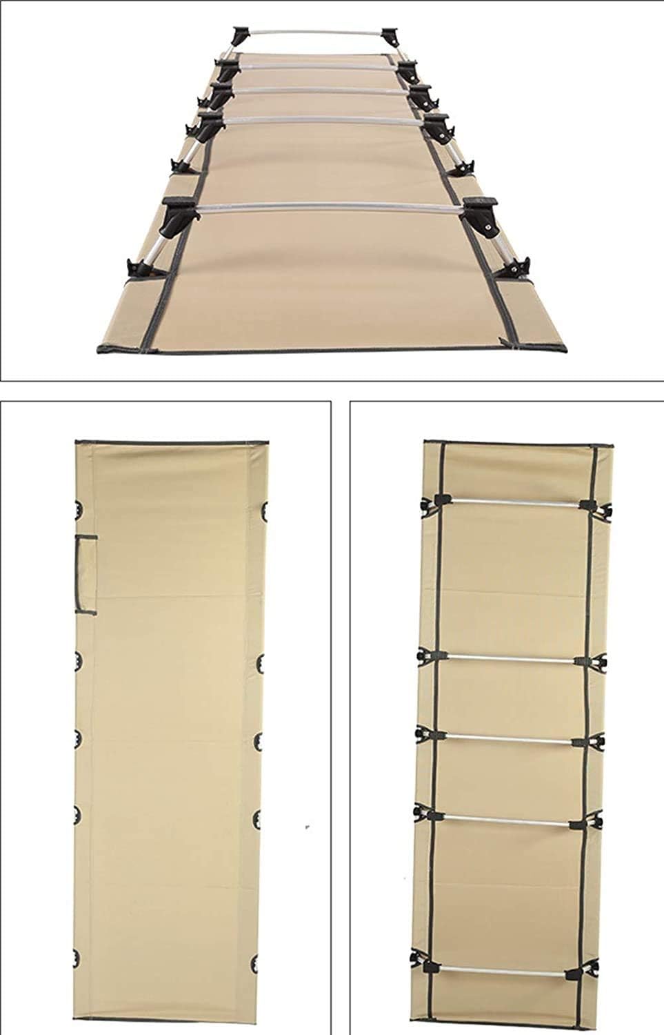 DREAMING OF THE PERFECT CAMPING COT? People of all sizes and ages can finally enjoy a perfect night's rest with this Folding Camping Cot from the outdoor experts at . Unlike annoying inflatable mattresses and uncomfortable sleeping bags, this deluxe bed in a bag is expressly designed for use while camping, so it's both lightweight and heavy duty. Comprised of a collapsible steel pipe e and resilient polyester cloth fabric, the cot features a gentle sloping incline, built-in pillow, and extra wide ‘mattress' so you have room to spread out and snooze. Perfect for youth or adult sleepers, The unit breaks down in a matter of seconds and folds neatly into its matching carry bag. Everything easily slings over your shoulder and weighs just 4.4pounds, fitting in nicely among your other hiking essentials. Best of all, there's no need for bulky mattress pads, cushions or sheets. The breathable bed is perfectly cool and cozy all by itself! Product name: simple bed, folding bed Product weight: 2KG Product load: 180KG. Product material: 7075 aviation aluminum alloy tube, 600D Oxford cloth bed surface, nylon feet Product features: light weight, breathability, quick-drying, waterproof, economical, simple assembly, lightweight structure Use scenario: touring car, fishing, clim, hiking, camper