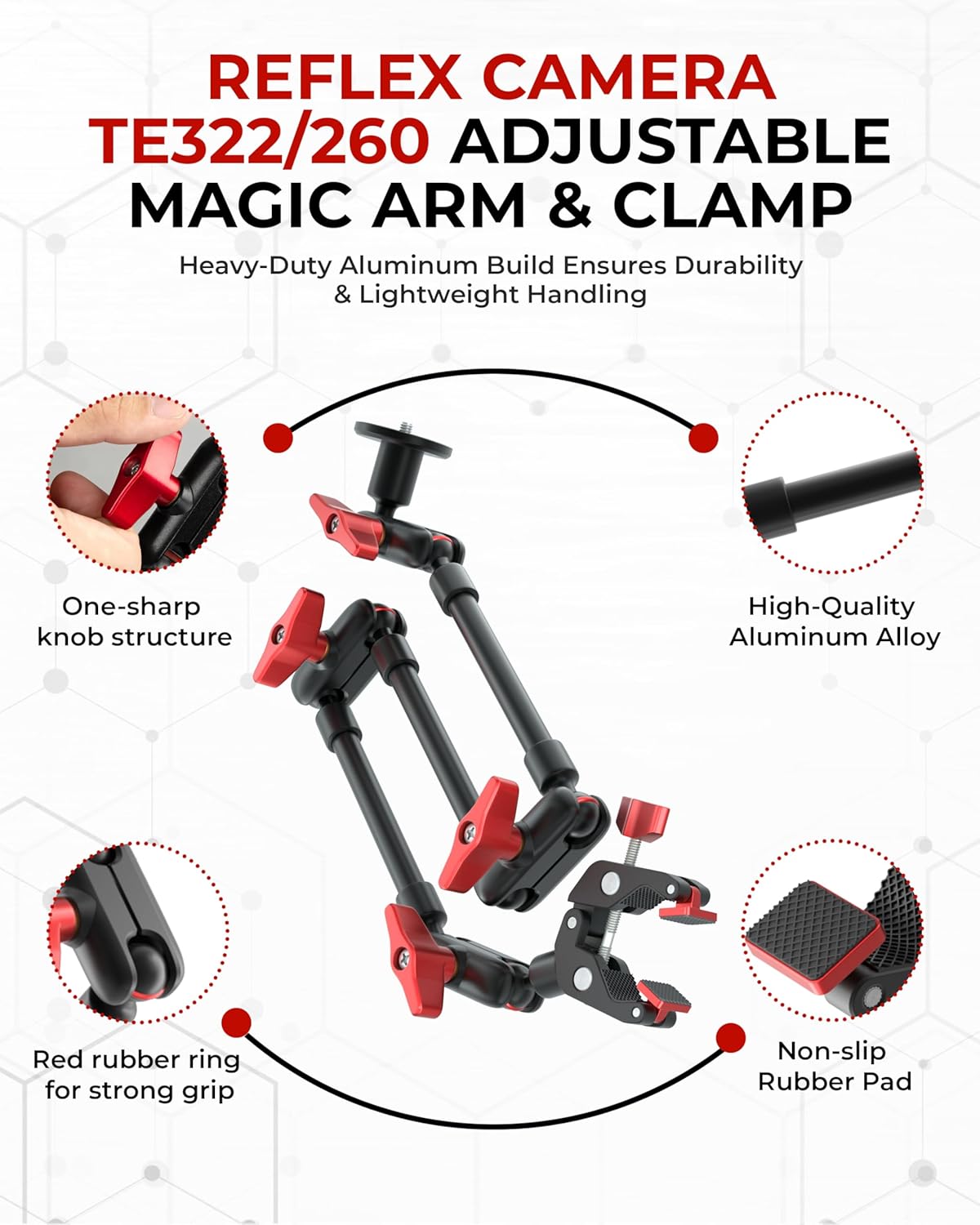 | BuiltIn Media | 1 x Reflex Camera Adjustable Magic Arm, 1 x Reflex Camera Super Crab Clamp |
