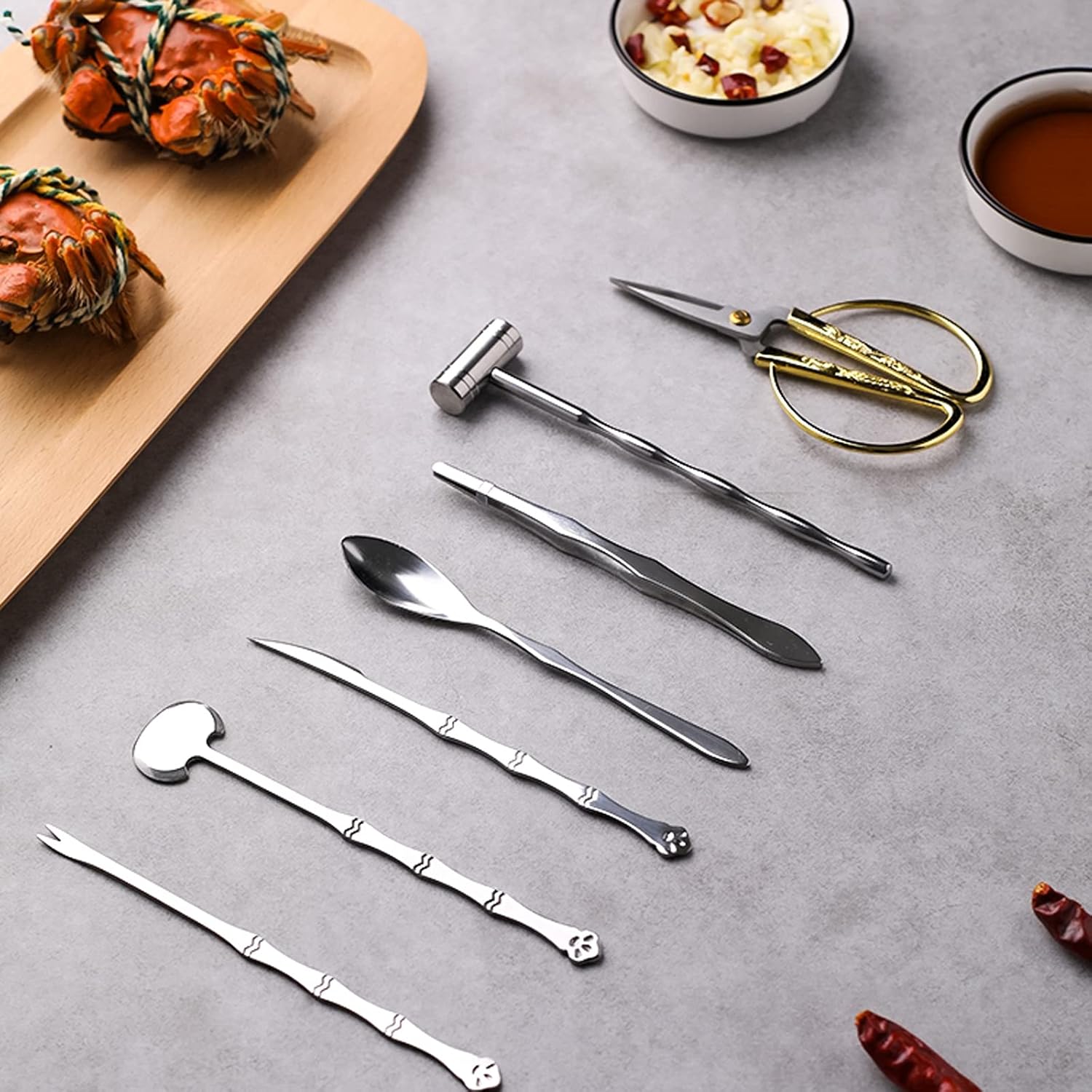 Perfect and Versatile Gift: With their beautiful finish, timeless design and high purpose, our seafood tools make a unique and appreciative gift to impress friends, family or chefs; Ideal present for house warming parties, Thanksgiving, Christmas or birthdays; This set will look stylish in any household and will be talking point at many parties Name: Seafood Tool Set Material: Stainless steel Quantity: 1 seafood scissors + 1 seafood fork + 1 seafood spoon + 1 long-handled axe + 1 seafood knife + 1 tweezers + 1 seafood hammer + 1 shaving stool 1. Please check the size before buying. Due to manual measurement, there will be an error of about 0-1 cm, please understand 2. There are no other items except the product in the product photo 3. Please note that due to different monitors, there may be slight color differences, please understand. 4. The above data is for reference only. The size is measured manually. Each variable may be different. Please refer to the actual product. thank you. 5. If you find any problems with our products, please feel free to contact us via email, we will solve the problem as soon as possible.