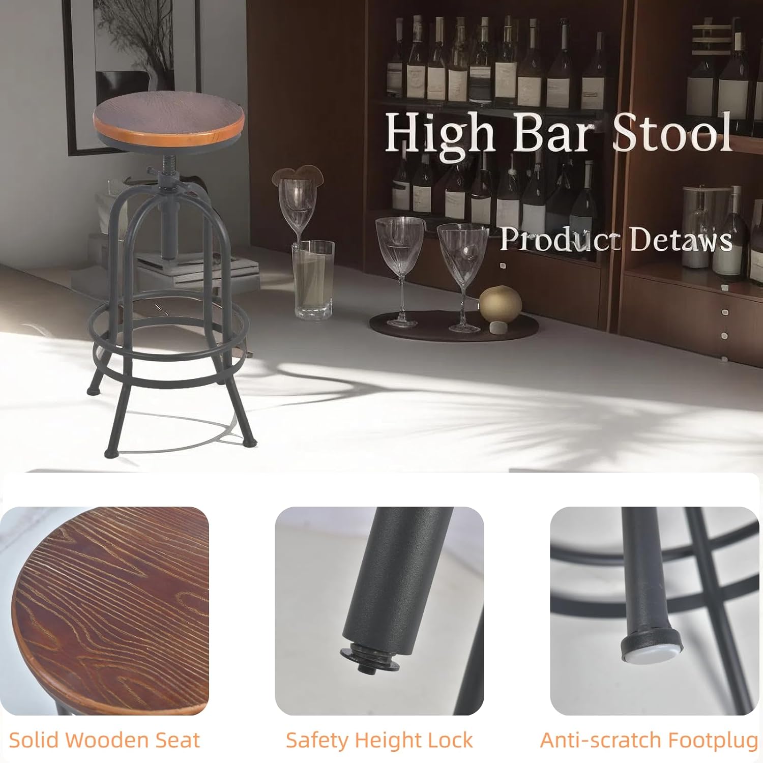 Color: Black; Material: Wood+ Metal; Table Height: 38.6-44.4inch; Stool Height: 26-32inch.