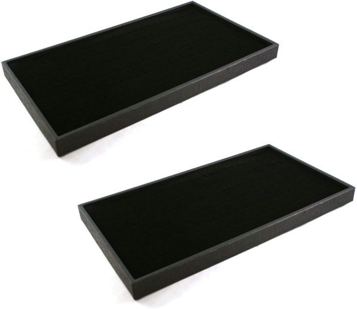 These CuteBox Company Black Ring Display Foam/Tray combos are great for retailers, small businesses, or jewelry enthusiasts. Each ring foam can hold up to seventy-two rings. The top of each foam is covered in black felt. The seventy-two ring slots are evenly spaced, allowing you to display every ring at once while giving each piece the room it needs to shine. Each foam fits perfectly in our standard sized jewelry display trays, measuring 15” x 8.5 x 1”. The trays are made of high quality, durable black plastic. These ring foams are great to show off your pieces at trade shows or in your store. They can also be utilized for home use, allowing you to keep your rings easily organized and accessible instead of jumbled up in a jewelry box. We offer these ring foams as single pieces, two packs, and six packs. Each ring foam is sturdy enough to keep your rings safely in place and well organized, while being soft enough to protect your jewelry from any scratches or other damages. These foams are incredible lightweight, even while in display trays, making them perfect for travel and transportation. Each tray small foot tabs which allow you to easily stack multiple trays on top of each other without them moving around.